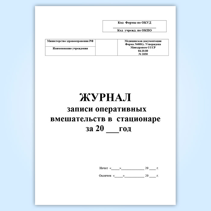 Журнал записи оперативных вмешательств в стационаре за год (форма 008/у) в Рошале купить