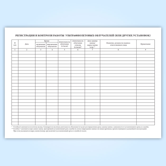 Журнал учета работы ультрафиолетовых облучателей (или других установок) (обсерватор) в Рошале купить