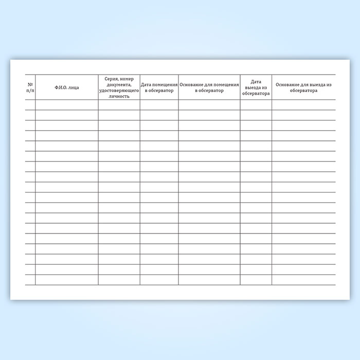 Журнал учета поступления и выбытия лиц, помещенных в обсерватор в Рошале купить