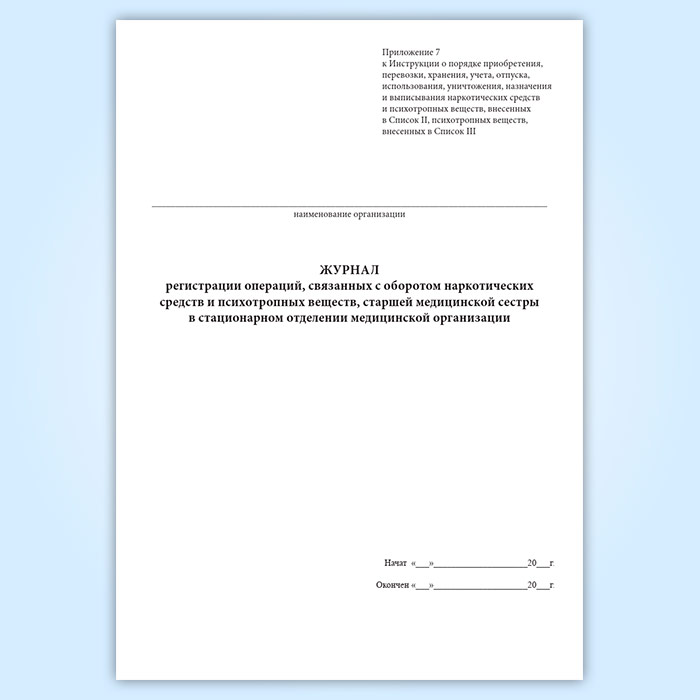 Журнал регистрации операций, связанных с оборотом наркотических средств и психотропных веществ старшей медицинской сестры в стационарном отделении медицинской организации в Рошале купить