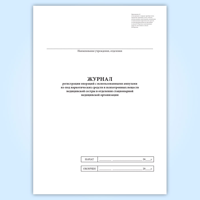 Журнал регистрации операций с использованными ампулами из-под наркотических средств и психотропных веществ медицинской сестры в отделении стационарной медицинской организации в Рошале купить
