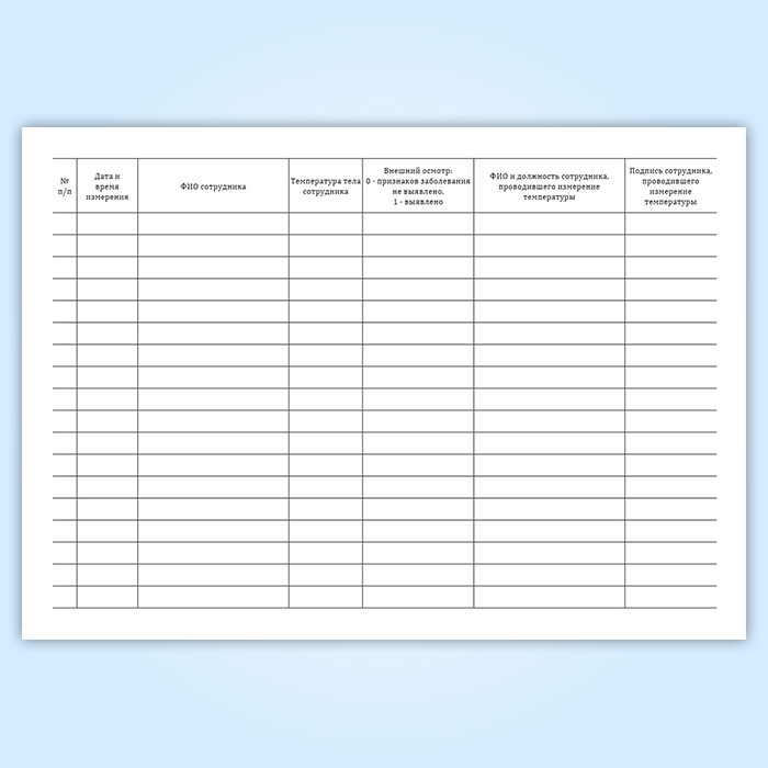 Журнал учета измерения температуры сотрудников (горизонтальный) в Рошале купить