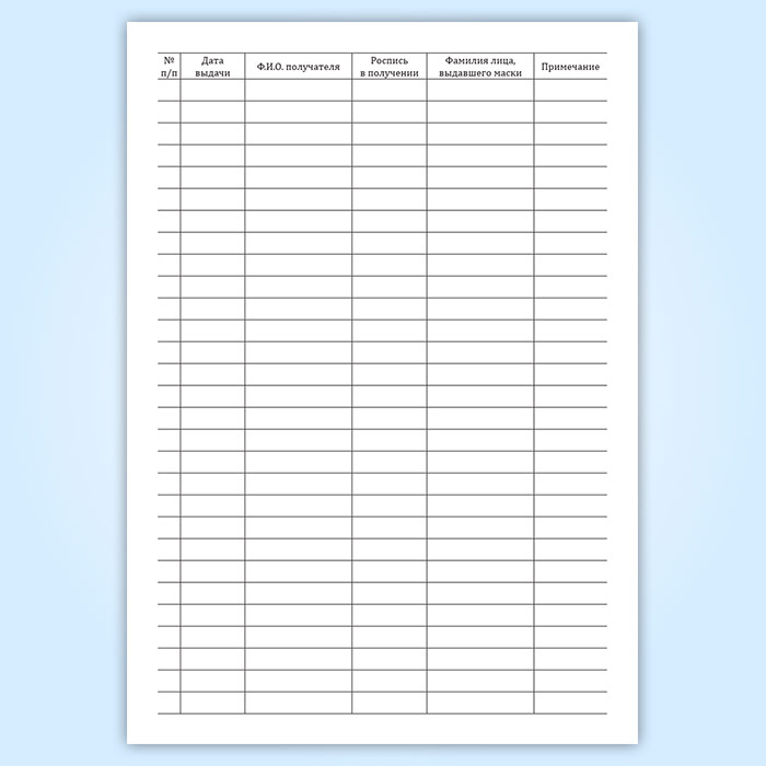 Журнал регистрации выдачи медицинских масок сотрудникам в Рошале купить