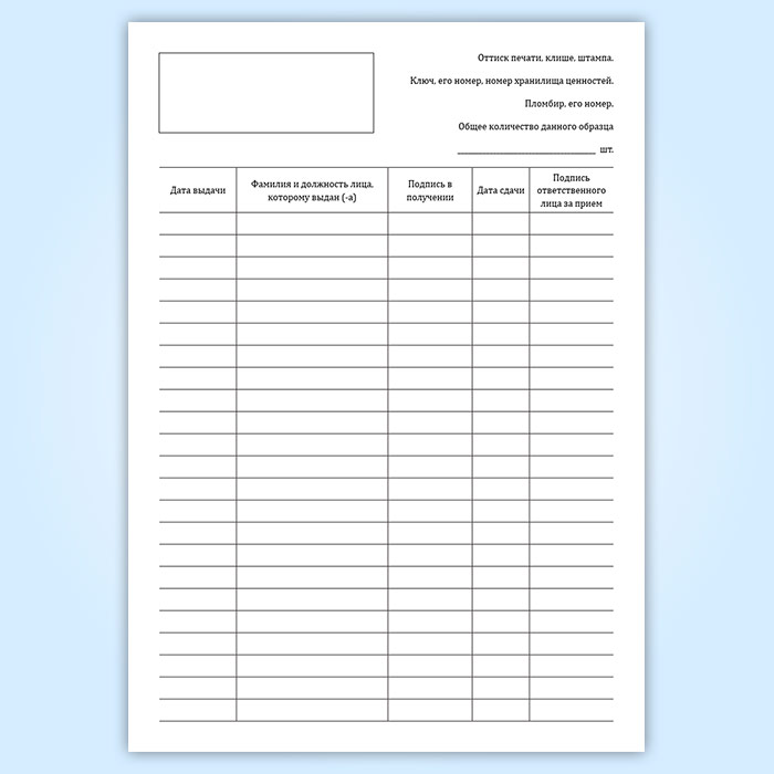 Вы получаете печатную продукцию прошнурованной и c местом для вашей печати в соответствии с действующими нормативными документами: