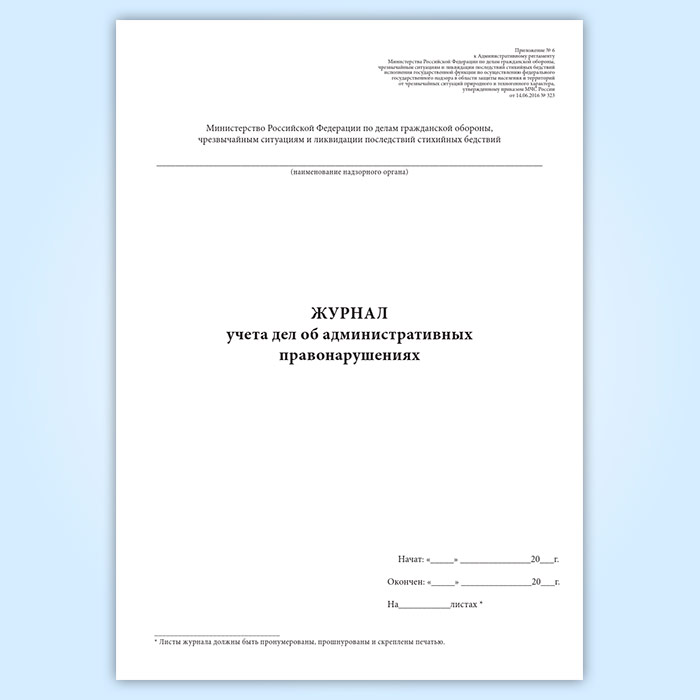 Журнал учета дел об административных правонарушениях (Приказ МЧС России от 14.06.2016 № 323) в Рошале купить