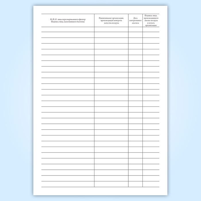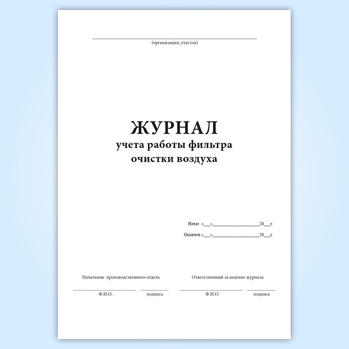 Журнал учета работы фильтра очистки воздуха в Рошале купить