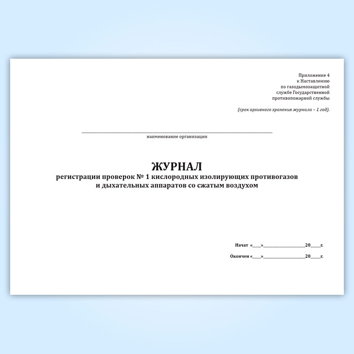 Журнал регистрации проверок № 1 кислородных изолирующих противогазов и дыхательных аппаратов со сжатым воздухом в Рошале купить