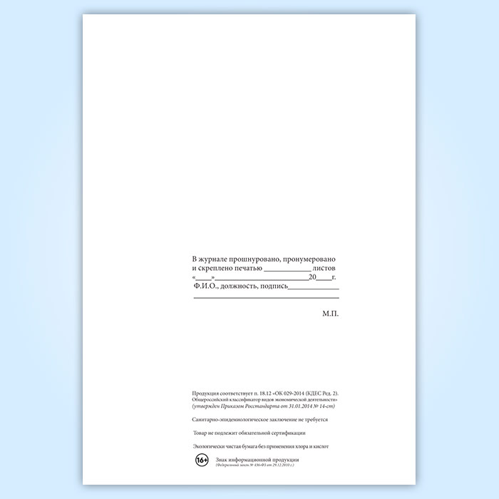Вы получаете печатную продукцию прошнурованной и c местом для вашей печати в соответствии с действующими нормативными документами: