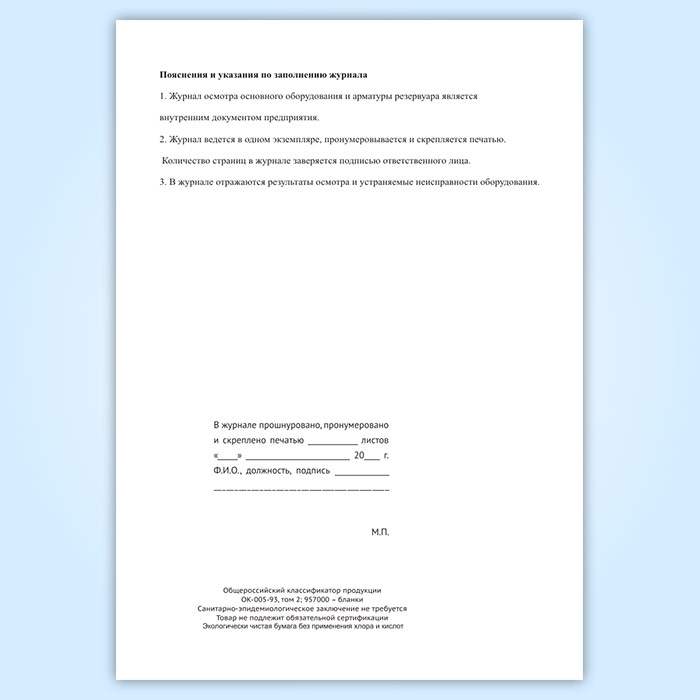 Журнал осмотра основного оборудования и арматуры резервуара (нефтепродукты) в Рошале купить