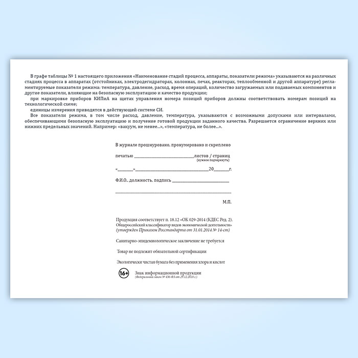 Журнал «Нормы технологического режима для непрерывных и периодических процессов» в Рошале купить