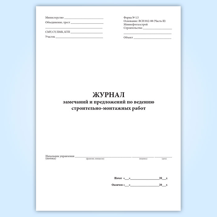 Журнал замечаний и предложений по ведению строительно-монтажных работ в Рошале купить