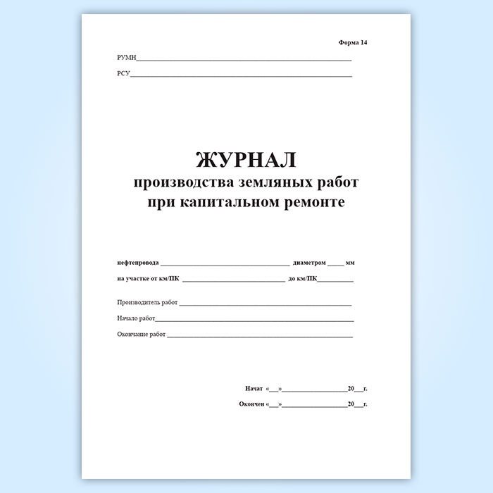 Журнал производства земляных работ при капитальном ремонте (форма 14) в Рошале купить