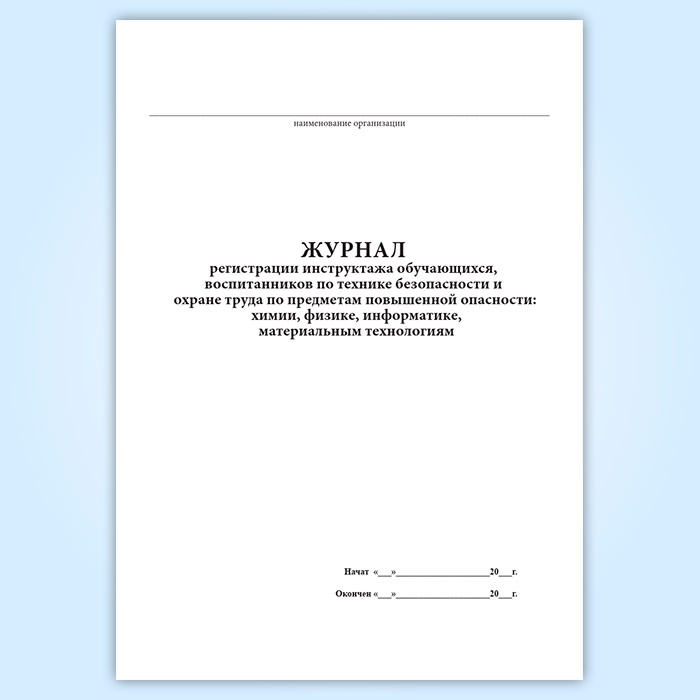 Журнал регистрации инструктажа обучающихся, воспитанников по технике безопасности и охране труда по предметам повышенной опасности: химии, физике, информатике, материальным технологиям в Рошале купить