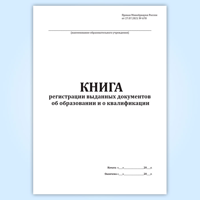 Книга регистрации выданных документов об образовании и о квалификации (Приказ Минобрнауки России от 27.07.2021 № 670) в Рошале купить