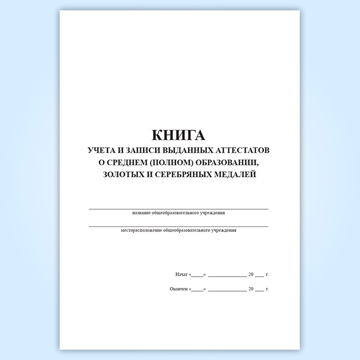 Книга учета и записи выданных аттестатов о среднем (полном) образовании, золотых и серебряных медалей в Рошале купить