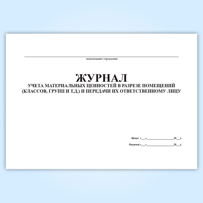 Журнал учета материальных ценностей в разрезе помещений (классов, групп и т.д.) и передачи их ответственному лицу в Рошале купить