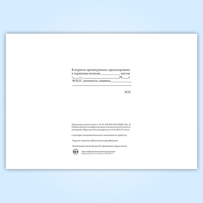 Вы получаете печатную продукцию прошнурованной и c местом для вашей печати в соответствии с действующими нормативными документами: