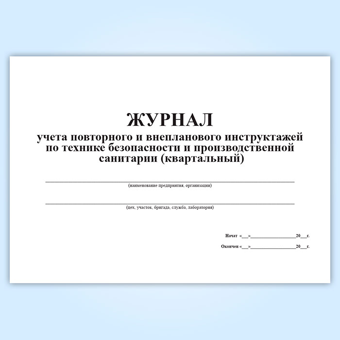 Журнал учета повторного и внепланового инструктажей по технике безопасности и производственной санитарии (квартальный) в Рошале купить