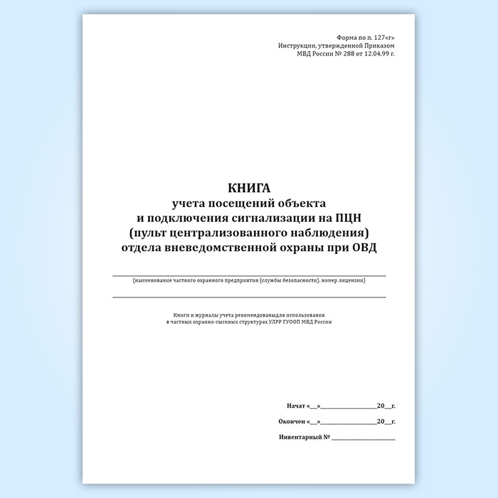 Книга учета посещений объекта и подключения сигнализации на ПЦН (пульт централизованного наблюдения) отдела вневедомственной охраны при ОВД (форма 127 г) в Рошале купить