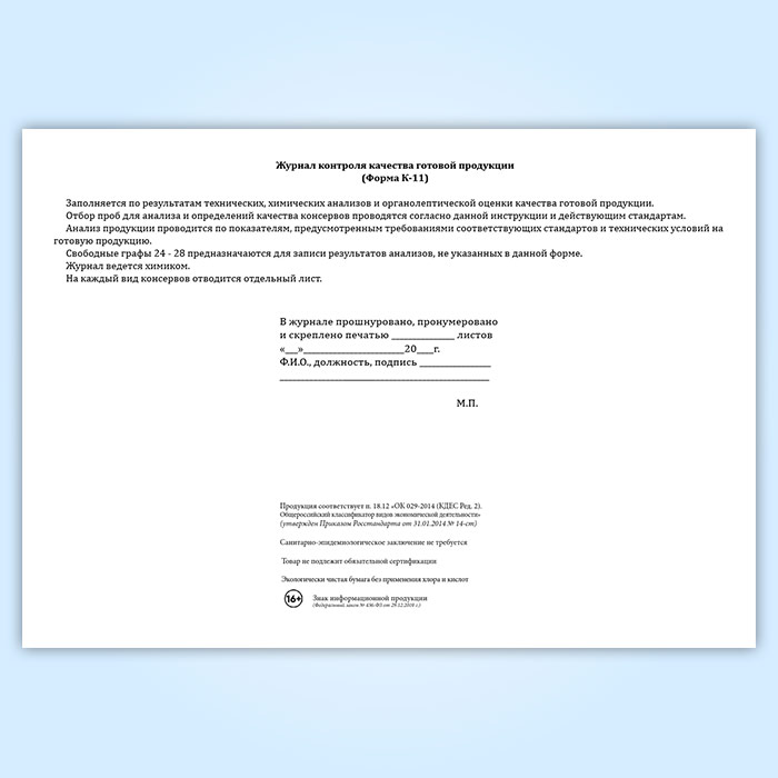 Журнал контроля качества готовой продукции (форма К-11) в Рошале купить