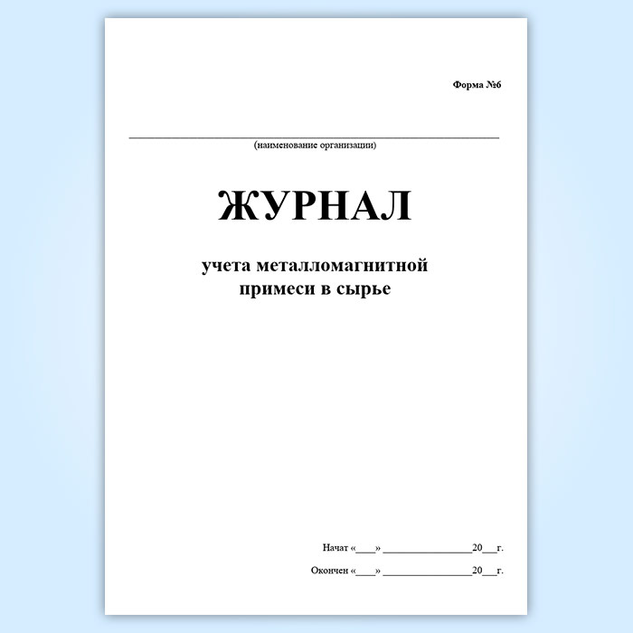 Журнал учета металломагнитной примеси в сырье (форма № 6) в Рошале купить