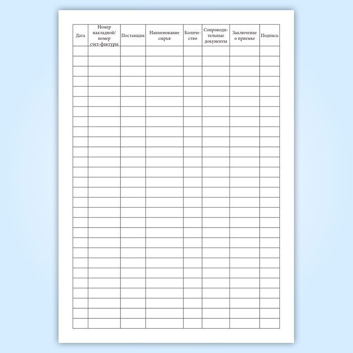 Журнал приемки пищевых компонентов, упаковочных материалов в Рошале купить