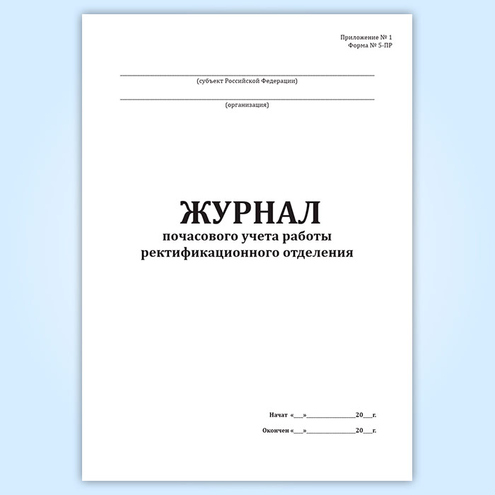 Журнал почасового учета работы ректификационного отделения (форма № 5-ПР) в Рошале купить