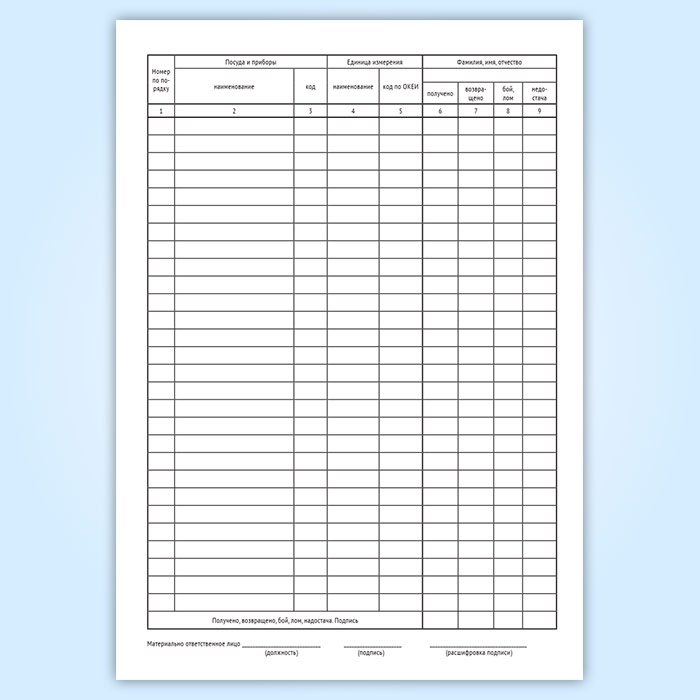 Журнал учета столовой посуды и приборов, выдаваемых подотчет сотрудникам предприятия (специализированная форма 16-ОПит) в Рошале купить