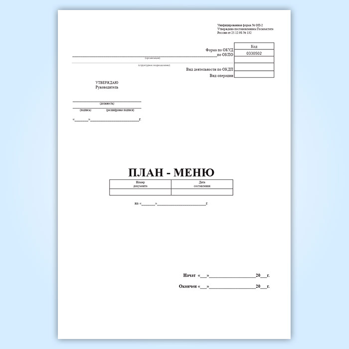 Журнал План-меню (форма ОП-2) в Рошале купить