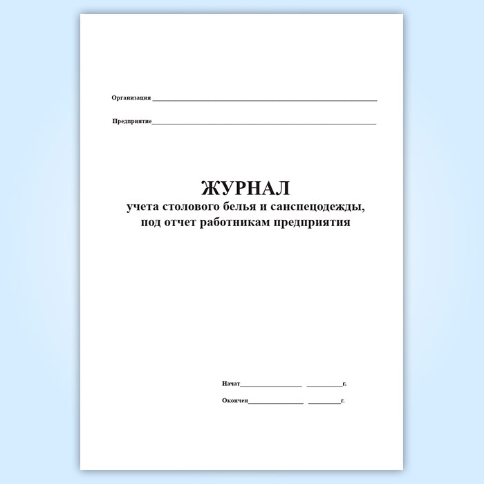 Журнал учета столового белья и санспецодежды, выдаваемой под отчет работникам предприятия в Рошале купить