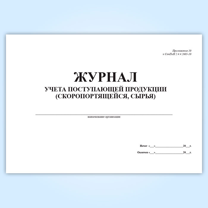 Журнал учета поступающей продукции (скоропортящейся, сырья) в Рошале купить