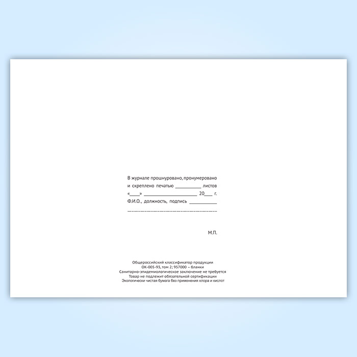 Вы получаете печатную продукцию прошнурованной и c местом для вашей печати в соответствии с действующими нормативными документами: