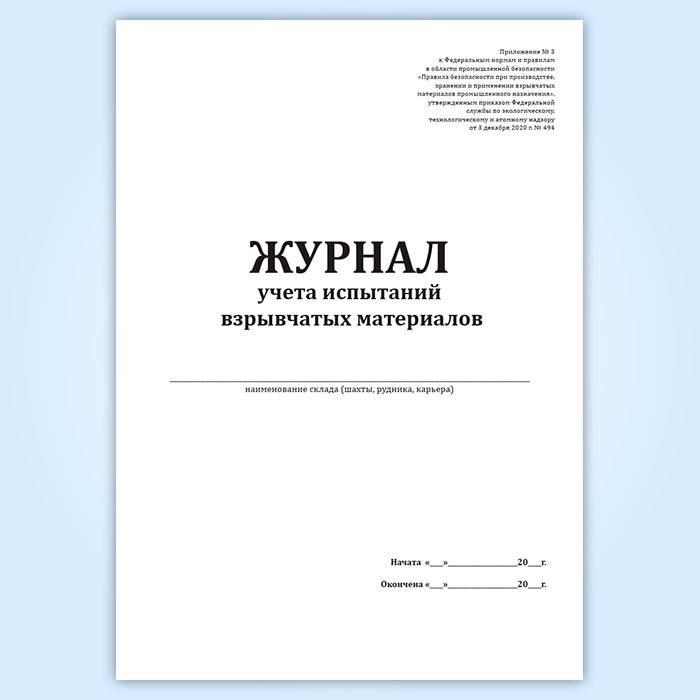 Журнал учета испытаний взрывчатых материалов в Рошале купить