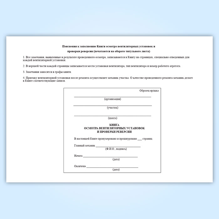 Книга осмотра вентиляторных установок и проверки реверсии в Рошале купить