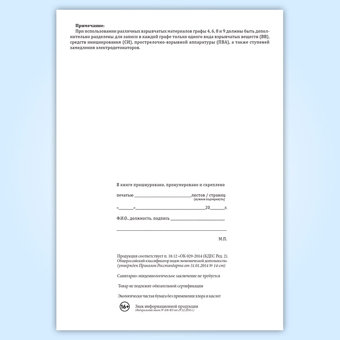 Книга учета выдачи и возврата взрывчатых материалов в Рошале купить