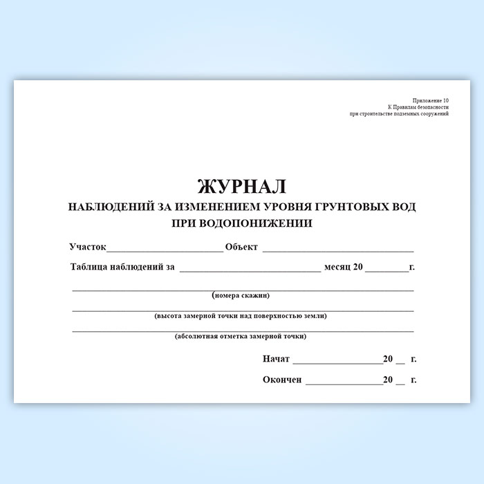 Журнал наблюдений за изменением уровня грунтовых вод при водопонижении в Рошале купить