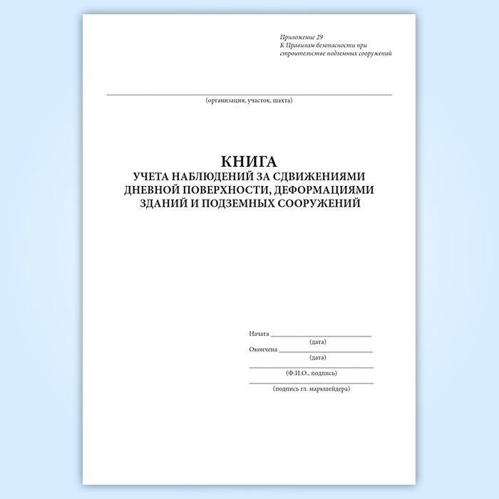 Книга учета наблюдений за сдвижениями дневной поверхности, деформациями зданий и подземных сооружений в Рошале купить