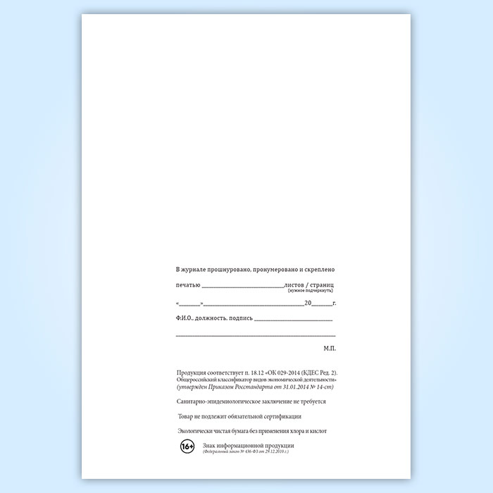 Вы получаете печатную продукцию прошнурованной и c местом для вашей печати в соответствии с действующими нормативными документами:
