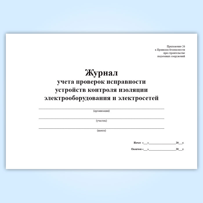 Журнал учета проверок исправности устройств контроля изоляции электрооборудования и электросетей в Рошале купить