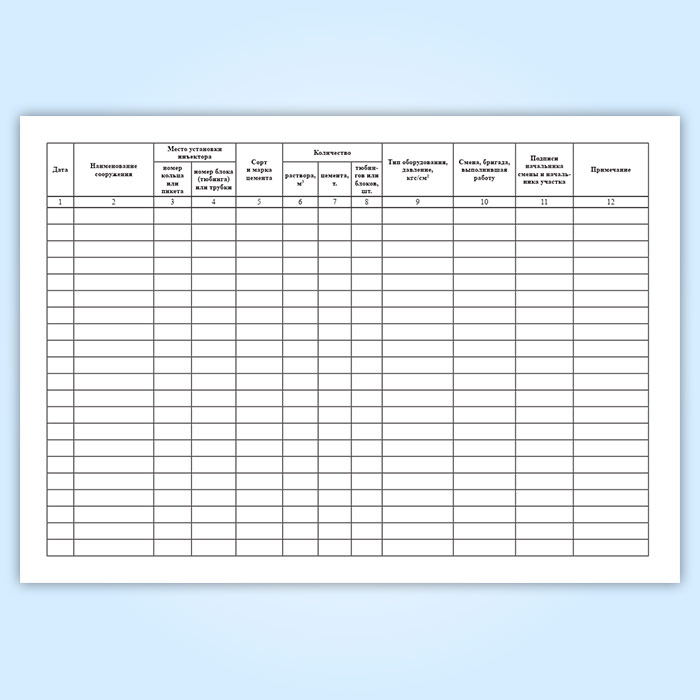 Журнал контрольного нагнетания цемента за обделку в Рошале купить