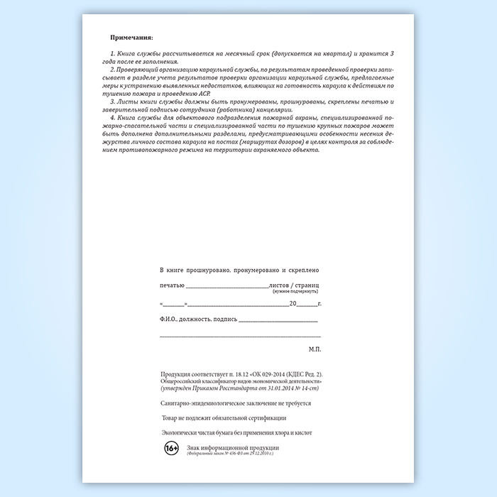 Вы получаете печатную продукцию прошнурованной и c местом для вашей печати в соответствии с действующими нормативными документами: