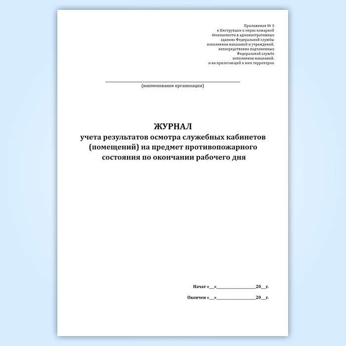 Журнал учета результатов осмотра служебных кабинетов (помещений) на предмет противопожарного состояния по окончании рабочего дня в Рошале купить