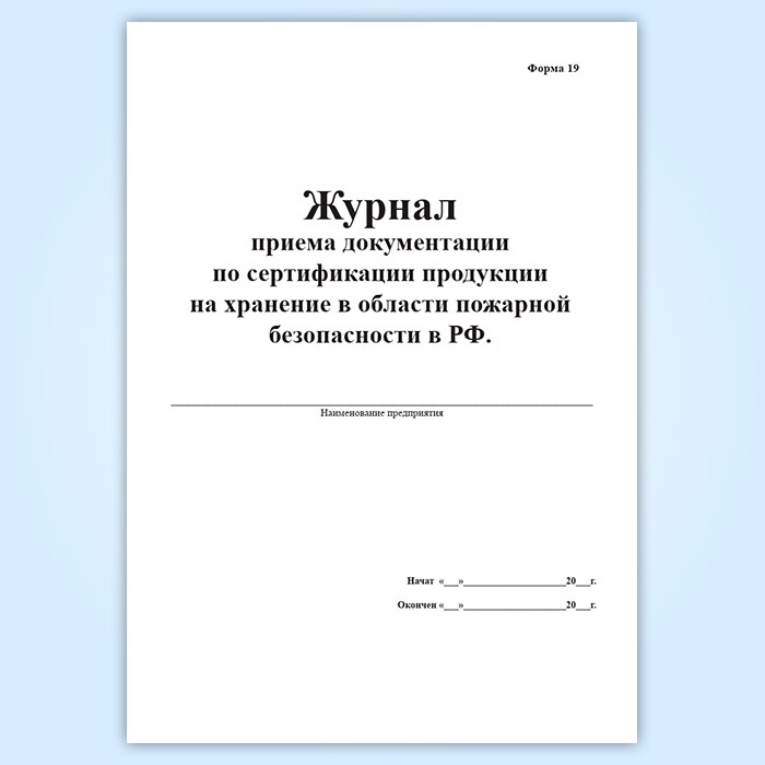 Журнал приема документации по сертификации продукции на хранение в области пожарной безопасности в РФ (форма 19) в Рошале купить