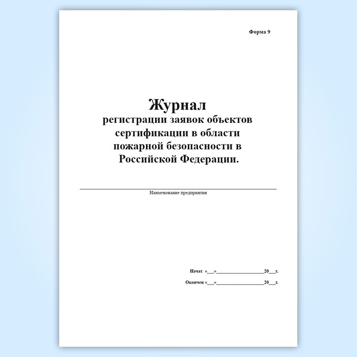 Журнал регистрации заявок объектов сертификации в области пожарной безопасности в Российской Федерации (форма 9) в Рошале купить