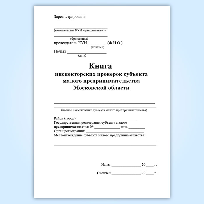 Книга инспекторских проверок субъекта малого предпринимательства Московской области в Рошале купить