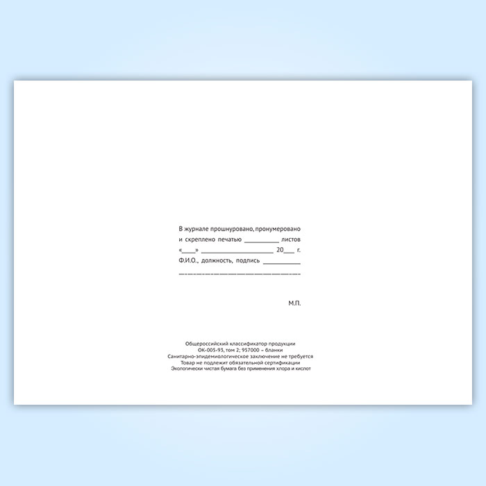 Вы получаете печатную продукцию прошнурованной и c местом для вашей печати в соответствии с действующими нормативными документами: