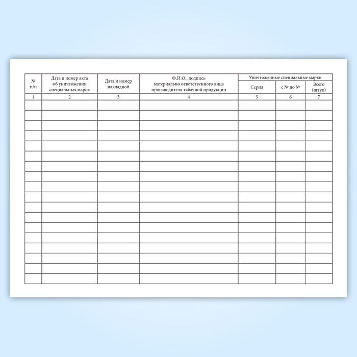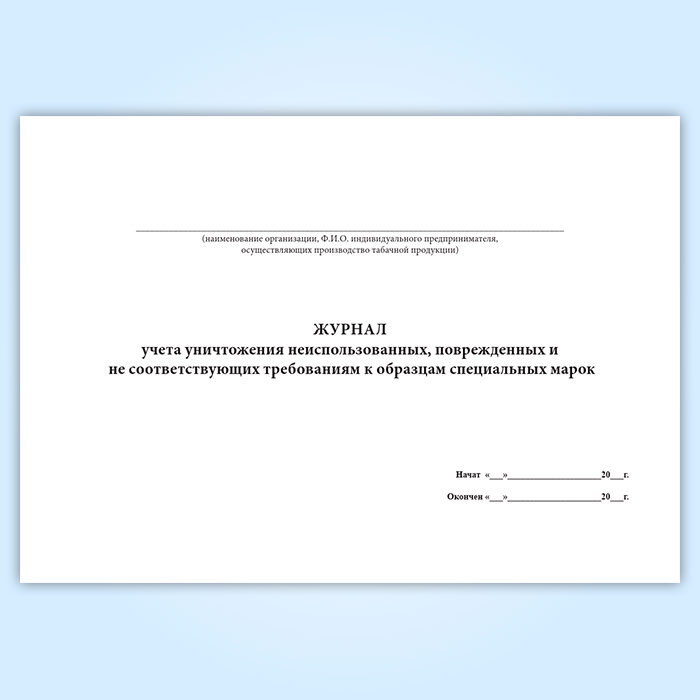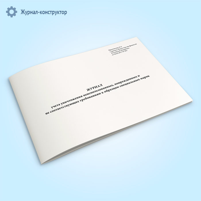Журнал учета уничтожения неиспользованных, поврежденных и не соответствующих требованиям к образцам специальных марок в Рошале купить