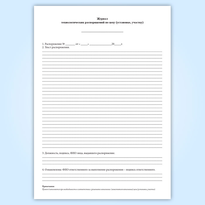 Журнал технологических распоряжений по цеху (установке, участку) в Рошале купить