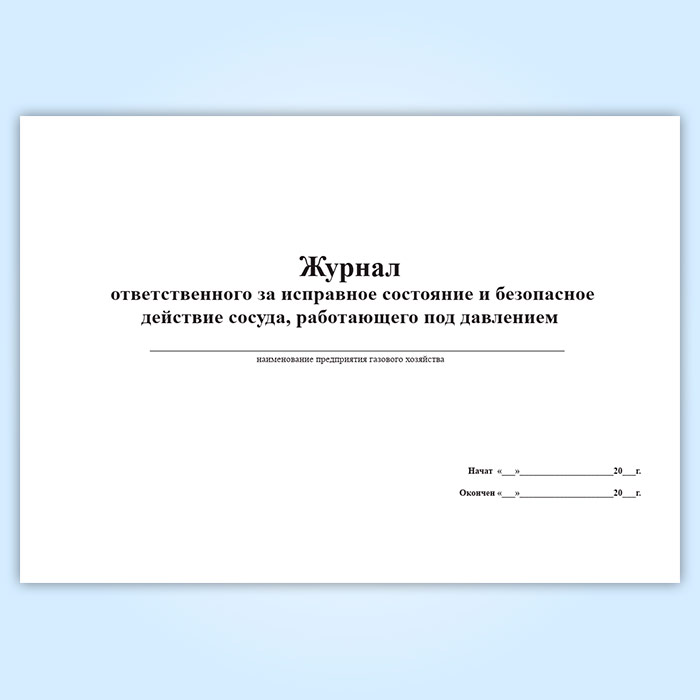 Журнал ответственного за исправное состояние и безопасное действие сосуда, работающего под давлением в Рошале купить