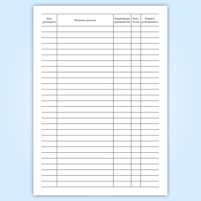 Журнал регистрации разведения моющих и дезинфицирующих средств в Рошале купить